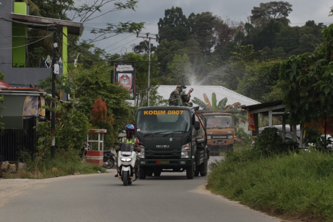 Mengerahkan sekitar 10 kendaraan untuk penyemprotan dan motor juga alat semprot manual. Tim Satgas Covid-19 Gabungan melakukan Sterilisaai di sekitar wilayah Tarakan Tengah dan Tarakan Barat yang merupakan Koramil 0907/02 dan Koramil 0907/03.