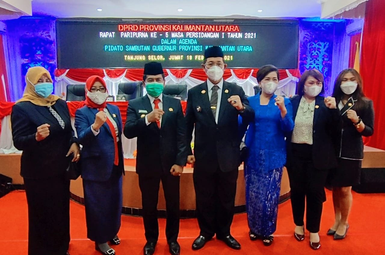 TANJUNG SELOR – Gubernur Kaltara Zainal Arifin Paliwang dan Wakil Gubernur Yansen Tipa Padan, untuk pertama kalinya menghadiri rapat paripurna di Gedung DPRD Kaltara dengan agenda pidato sambutan gubernur Kaltara, Jumat (19/2/2021).