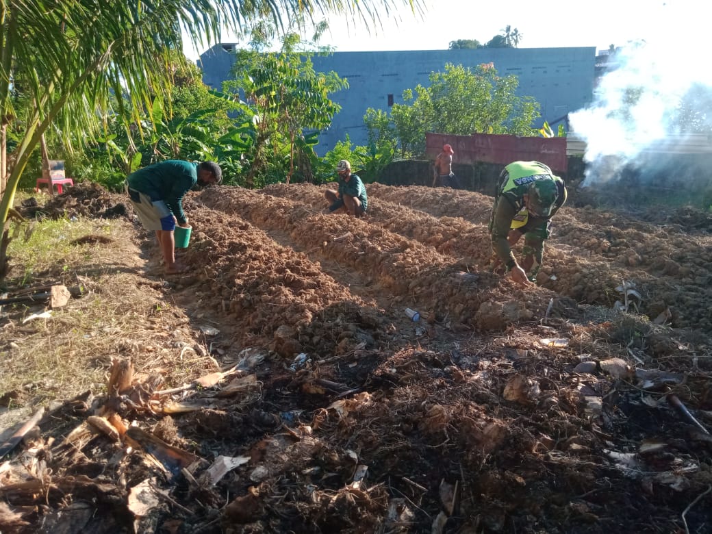Pemanfaatan lahan tersebut dikerjakan oleh Babinsa bersama Pengurus Posko Covid tingkat RT,untuk memberikan motivasi kepada masyarakat agar mengolah lahan tidur yang dimiliki sebagai dukungan terhadap ketahanan pangan di tengah pandemi Covid-19 saat ini.