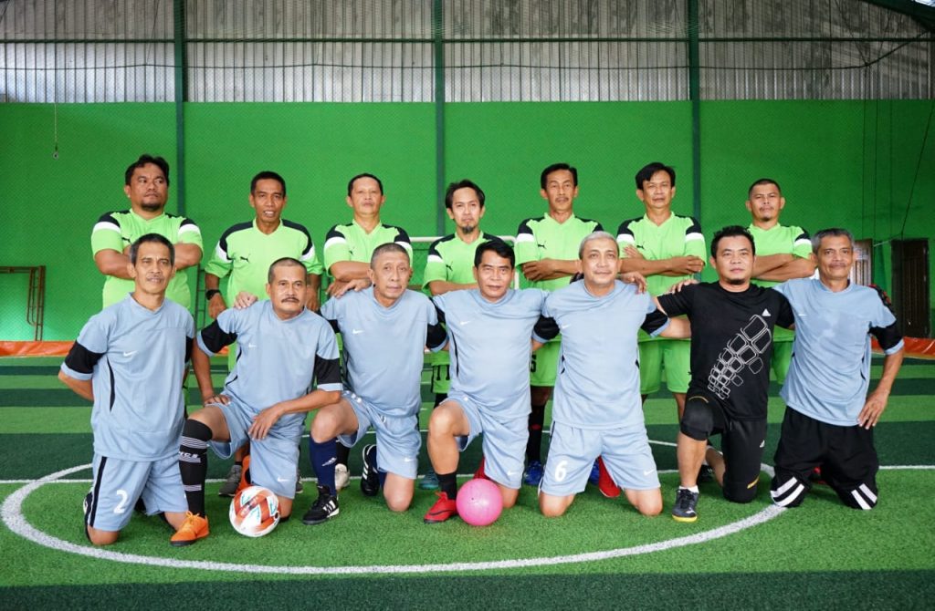 Tiba di lapangan, Gubernur langsung menyapa teman dan lawan mainnya. Gubernur Zainal mengenakan jersey berwarna abu-abu dengan nomor punggung tiga.