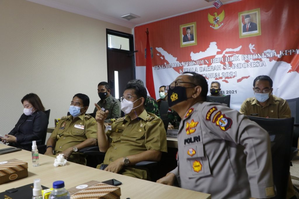 Tanjung Selor-Dalam rangka antisipasi lonjakan kasus Covid-19 pasca lebaran, Gubernur ikuti rapat koordinasi kepala daerah yang dipimpin oleh Presiden Republik Indonesia (RI). Pertemuan yang dilakukan secara daring tersebut diikuti oleh Gubernur, Wakil Gubernur, Kapolda, Sekda, Forkopimda beserta jajaran lainnya pada Senin, (17/5) dari ruang rapat kantor Gubernur.