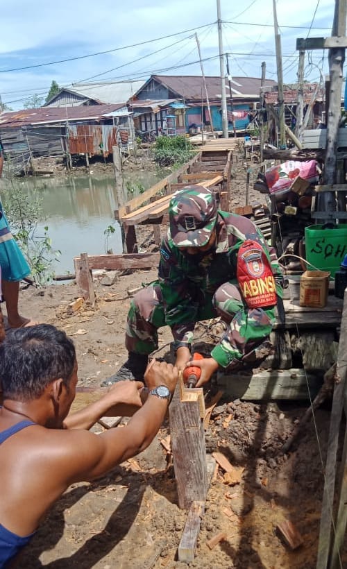 Hal tersebut dilakukan Babinsa Koramil 0907/03 Tarbar Serma Suparman.sebagai upaya membangun kebersamaan dirinya ikut serta dalam pembuatan jembatan bersama warga binaan di RT.22 Kelurahan Karang anyar pantai,Selasa(15/06/2021).