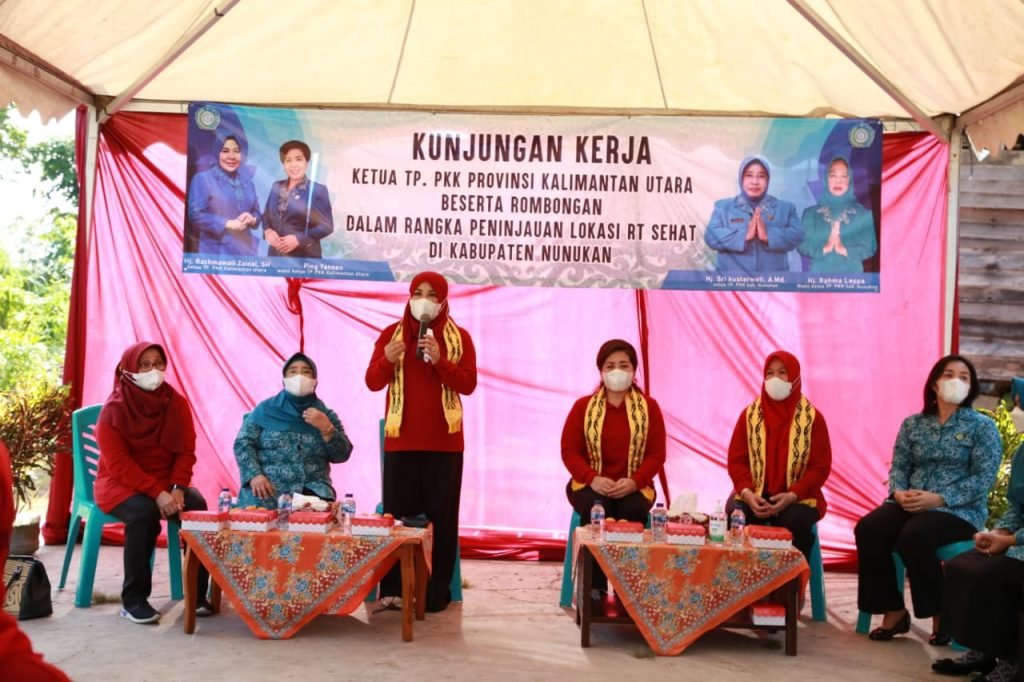 Nunukan-Dalam rangka kunjungan kerja, Ketua dan Wakil Ketua Tim Penggerak Pemberdayaan dan Kesejahteraan Keluarga (TP-PKK) Provinsi Kalimantan Utara (Kaltara) beserta rombongan meninjau lokasi RT Sehat di RT 13 Kelurahan Nunukan Barat, Kecamatan Nunukan pada Kamis, (24/6).