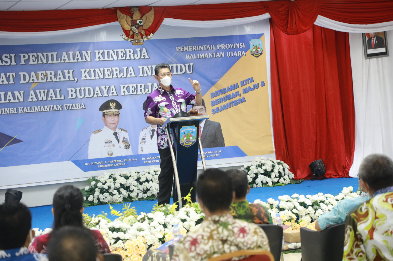 Tanjung Selor-Dalam rangka meningkatkan kinerja perangkat daerah dalam penerapan budaya kerja, Pemerintah Provinsi (Pemprov) Kalimantan Utara (Kaltara) melalui Biro Organisasi mengadakan kegiatan Sosialisasi Penilaian Awal Budaya Kerja, Penilaian Kinerja Perangkat Daerah dan Kinerja Individu di lingkungan Pemprov Kaltara pada Kamis, (1/7).