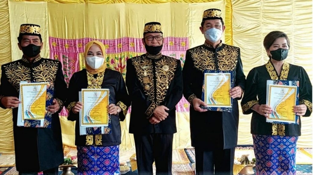 TANJUNG SELOR-Penganugerahan gelar Bangsawan Kesultanan Bulungan, kepada pasangan Gubernur Kalimantan Utara (Kaltara), Zainal A. Paliwang dan Rachmawati Zainal, serta Wakil Gubernur (Wagub) Yansen TP dan Ping Yansen berlangsung di rumah besar atau rumah Perdana Menteri Kesultanan Bulungan di Jalan Kasimuddin Tanjung Palas, Senin (27/12).