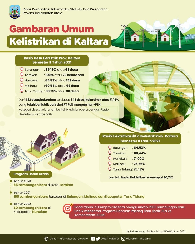 Deni juga menyampaikan, dari total 482 desa se Kaltara, baru 71,16 persen atau 343 desa di Kaltara yang masuk ke dalam program Desa dan prosentase Rasio Elektrifikasi sudah mencapai 80,71 persen hingga akhir 2021. Hal ini tentunya menjadi tugas penting Bagi Dinas ESDM Kaltara untuk dapat meningkatkan RDB dan RE agar dapat mencapai target nasional. (dkisp)