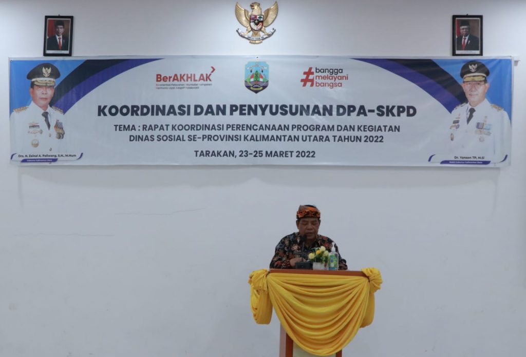 TARAKAN – Guna mensinkronkan kegiatan, Dinas Sosial Provinsi Kalimantan Utara (Kaltara) menyelenggarakan Rapat Koordinasi dan Penyusunan DPA-SKPD di Hotel Royal Crown, Kamis (24/3/22). Selain mengundang seluruh perwakilan Dinas Kabupaten/Kota se-Kalimantan Utara, acara tersebut juga menghadirkan narasumber dari Kementerian Sosial dan Bappeda-Litbang Provinsi Kaltara.