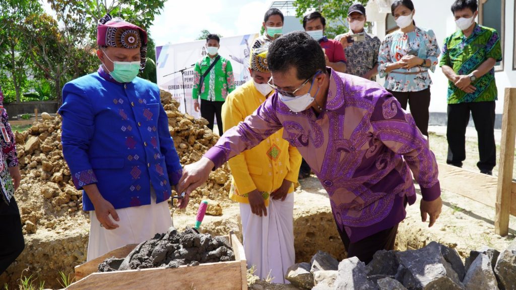 TANJUNG SELOR – Wakil Gubernur (Wagub) Kalimantan Utara (Kaltara) Dr. Yansen TP., M.Si menghadiri dan melakukan peletakan batu pertama pastori Gereja Toraja Jemaat Sion Tanjung Selor di Jalan Jeruk, Jumat (25/3/2022). Kegiatan ini dihadiri oleh Ketua Badan Musyawarah Antar Gereja (BAMAG) Kabupaten Bulungan, Pengurus Kalasis Kaltara-Berau, Penasehat dan Ketua Ikatan Keluarga Toraja (IKAT) Tanjung Selor.