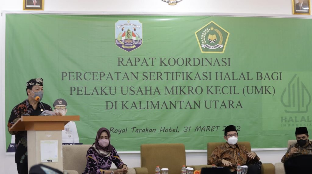 TARAKAN-Mengingat krusialnya keamanan makanan bagi masyarakat, Dinas Perindustrian, Perdagangan, Koperasi (Disperindagkop) Provinsi Kalimantan Utara (Kaltara) menggelar Rapat Koordinasi Percepatan Sertifikasi Halal Bagi Usaha Mikro Kecil (UMK) di Hotel Royal, Kamis (31/3/2022).