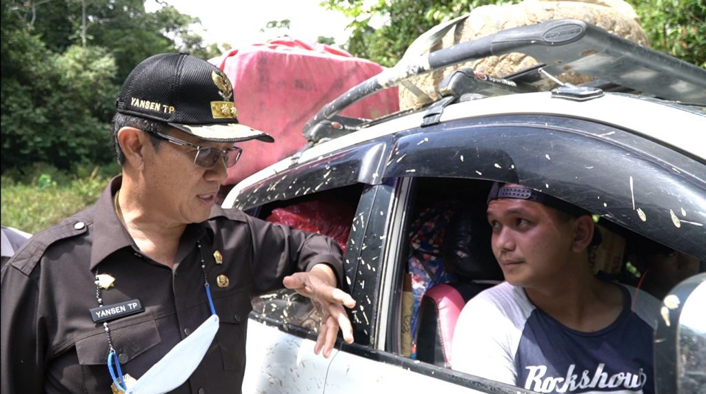 Dalam perjalanannya, Wagub Yansen melintasi beberapa jembatan darurat yang terbuat seadanya dari kayu log. Kondisi ini cukup berat dan membahayakan apalagi tak jarang ditemui jalan berlubang akibat kikisan tanah.