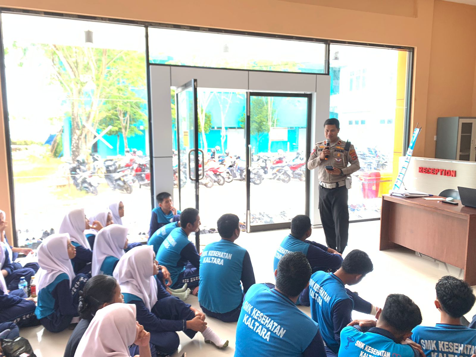 “dikesempatan ini kami dari sat lantas polres tarakan menghimbau kepada pelajar, untuk menumbuhkan kesadaran berlalulintas sejak dini, mengenai tata tertib berlalulintas agar dalam berkendara tidak menggunakan knalpot bising, tidak menggunakan HP saat berkendara, menggunakan Helm SNI dan tidak membonceng lebih dari 1 orang, serta tidak ugal-ugalan dan apabila belum berumur 17 tahun tidak boleh membawa kendaraan sendiri karena syarat untuk bias mengendarai kendaraan harus memiliki Surat Ijin Mengemudi dengan usia minimal 17 tahun”. Ungkap kanit kamsel. (*)