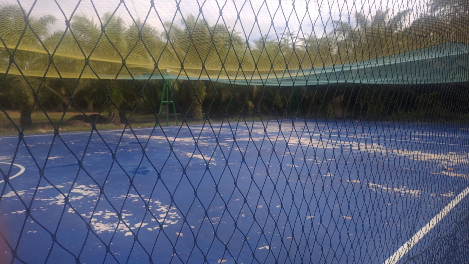 Sementara terkait tali jaring yang dipasang membentang, dan diikatnya di pohon kelapa sawit, menurut Hendra itu adalah inisiatif sumbangan dari kontraktor pelaksana pekerjaan, hanya sebagai pembatas untuk menghalangi bola agar tidak mengganggu lingkungan sekitarnya.