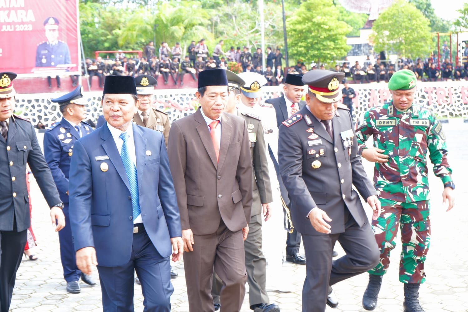 NUNUKAN – Wakil Bupati Nunukan H.Hanafiah,S.E.,M.Si didampingi Sekretaris Daerah kabupaten Nunukan Serfianus,S.IP., M.Si menghadiri upacara dan syukuran dalam rangka Hari Ulang Tahun (HUT) Bhayangkara ke 77 Tahun 2023 yang dipusatkan di lapangan upacara Tribrata Polres Nunukan, Sabtu,(01/07).