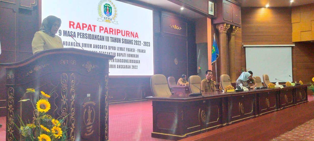 NUNUKAN – Nota pengantar Bupati Nunukan tentang laporan keterangan pertanggungjawaban (LKPJ) pelaksanaan APBD tahun anggaran (TA) 2022, mendapatkan catatan dari Empat Fraksi DPRD Nunukan, pada Rapat Paripurna ke-9 Masa Persidangan III Tahun Sidang 2022-2023, Senin (10/07/2023).