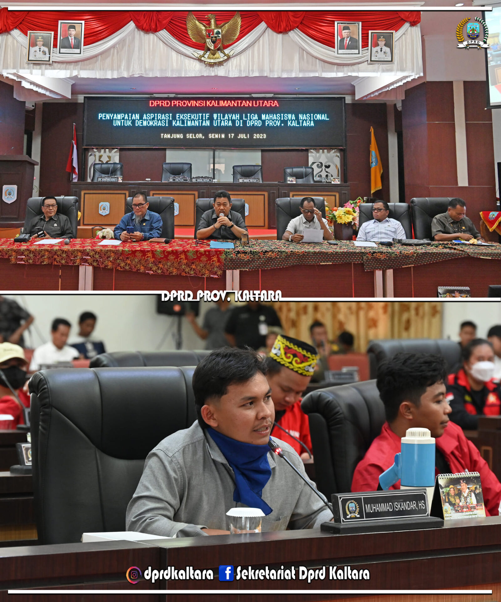 TANJUNG SELOR – Ketua DPRD Prov. Kaltara Albertus Stefanus Marianus bersama Anggota DPRD Prov. Kaltara menerima kegiatan aksi damai oleh Eksekutif Wilayah Liga Mahasiswa Nasional untuk Demokrasi Kalimantan Utara di wilayah Kantor DPRD Kaltara, Senin (17/07/23).