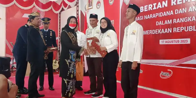 NUNUKAN – Ketua DPRD Kabupaten Nunukan Leppa, turut hadir di aula Lapas Nunukan, dalam agenda pemberian remisi bagi ratusan Warga Binaan Pemasyarakatan (WBP) Lapas Kelas IIB Nunukan, Kamis (17/8/2023).