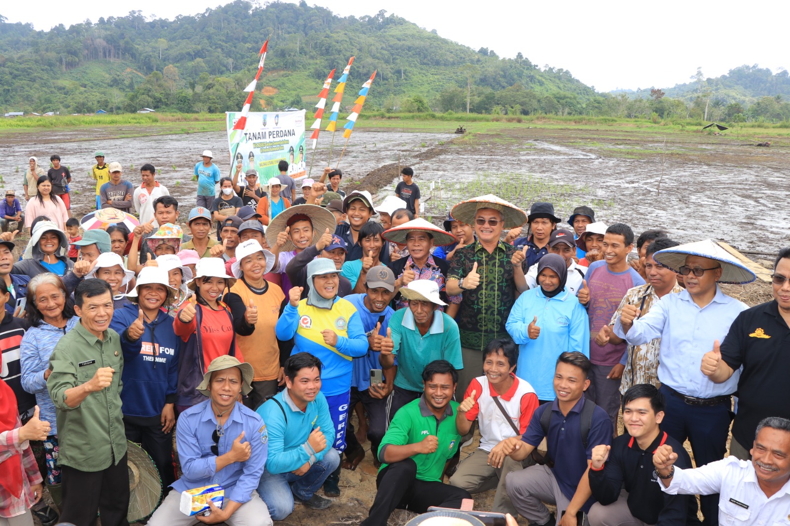 PEDULI PETANI : Tahun ini, Pemprov Kaltara bakal menyerahkan kembali bantuan pertanian. Gubernur Kaltara, Drs H Zainal A Paliwang SH, M.Hum berfoto bersama petani di Kabupaten Malinau belum lama ini.