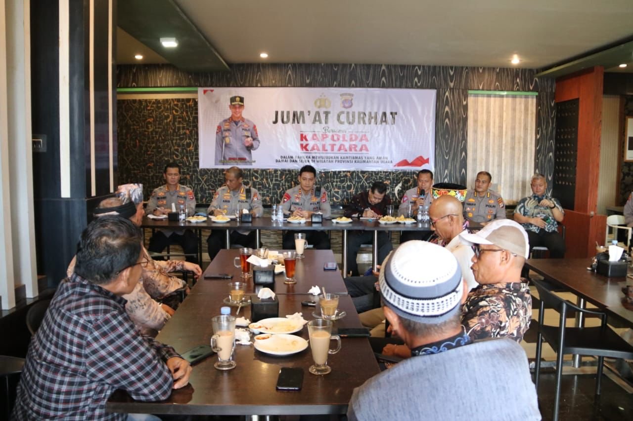 BULUNGAN – Kapolda Kaltara Irjen Pol Daniel Adityajaya, S.H., S.I.K., M.Si. menghadiri kegiatan Jum’at curhat guna mendengarkan aspirasi masyarakat di Resto Lepak Komai Tanjung Selor Kab. Bulungan, Jum’at (15/09/2023).