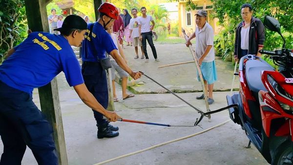 ” Proses penangkapan ular berlangsung sekitar 20 menit, saat keluar dari kap motor, petugas dengan sigap menjepit bagian tubuh ular sehingga bisa evakuasi,” ujarnya.