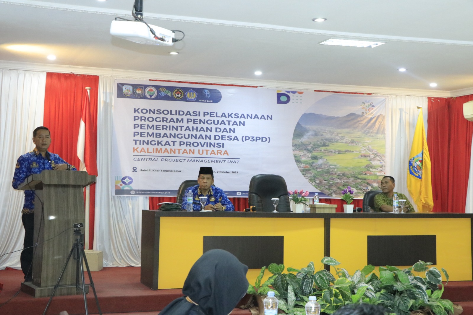 TANJUNG SELOR – Asisten Bidang Pemerintahan dan Kesejahteraan Rakyat Kaltara (Kesra) Setprov Kaltara, Datu Iqro Ramadhan, S.Sos., M.Si membuka kegiatan Konsolidasi Pelaksanaan Program Penguatan Pemerintahan dan Pembangunan Desa (P3PD) tingkat Provinsi Kalimantan Utara di Hotel Pangeran Khar, Senin (2/10).