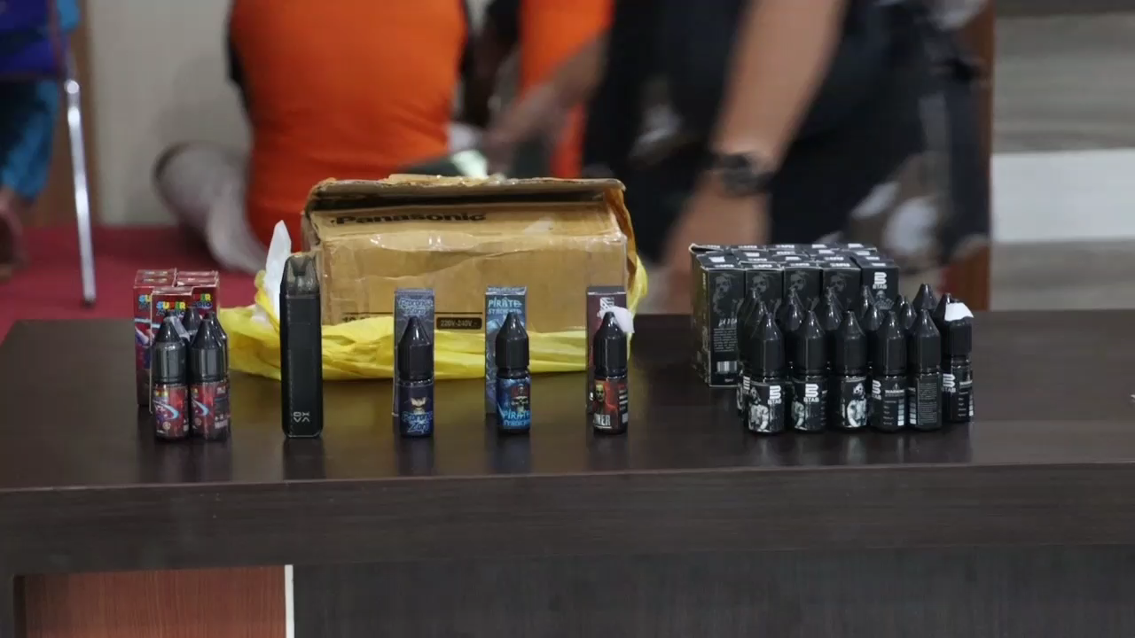“Dari hasil istrogasi para tersanga juga didapati keterangan, untuk liquid berisikan ganja sisntetis ini para tersangka edarkan dengan harga 100 ribu rupiah per sekali suntik di kepala vape atau cartridge”, ungkap Kapolres.