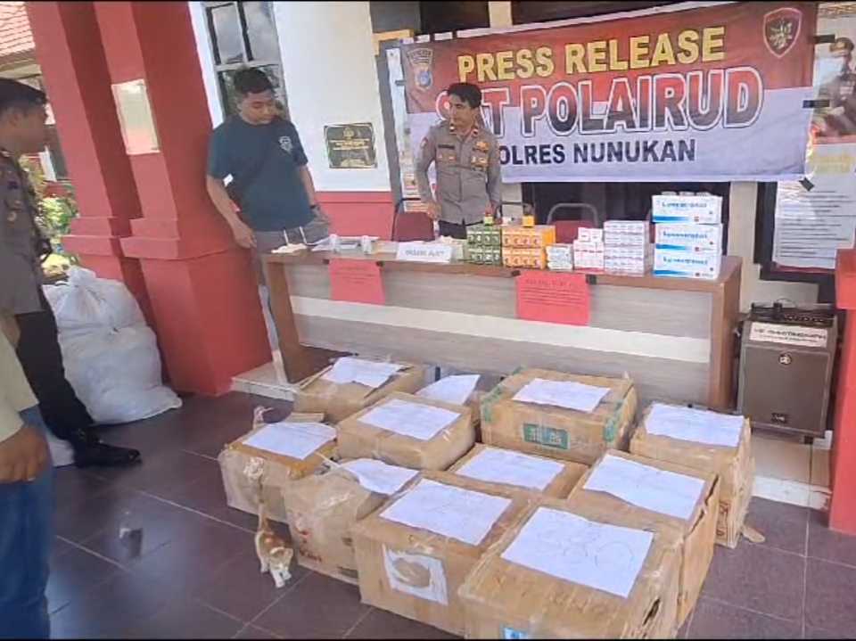 NUNUKAN – penegak hukum (Gakkum) Sat Polairud Polres Nunukan, Pada hari Sabtu (14/10/2023) lalu berhasil mengamankan ribuan Obat-Obatan dan Kosmetik dari sebuah kapal KM Queen Soya.