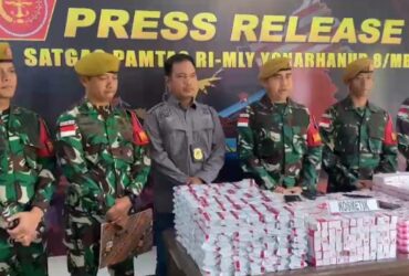Satgas Pamtas RI-Malaysia Yonarhanud 8/MBC Amankan Ribuan Kosmetik Ilegal dan Puluhan Miras