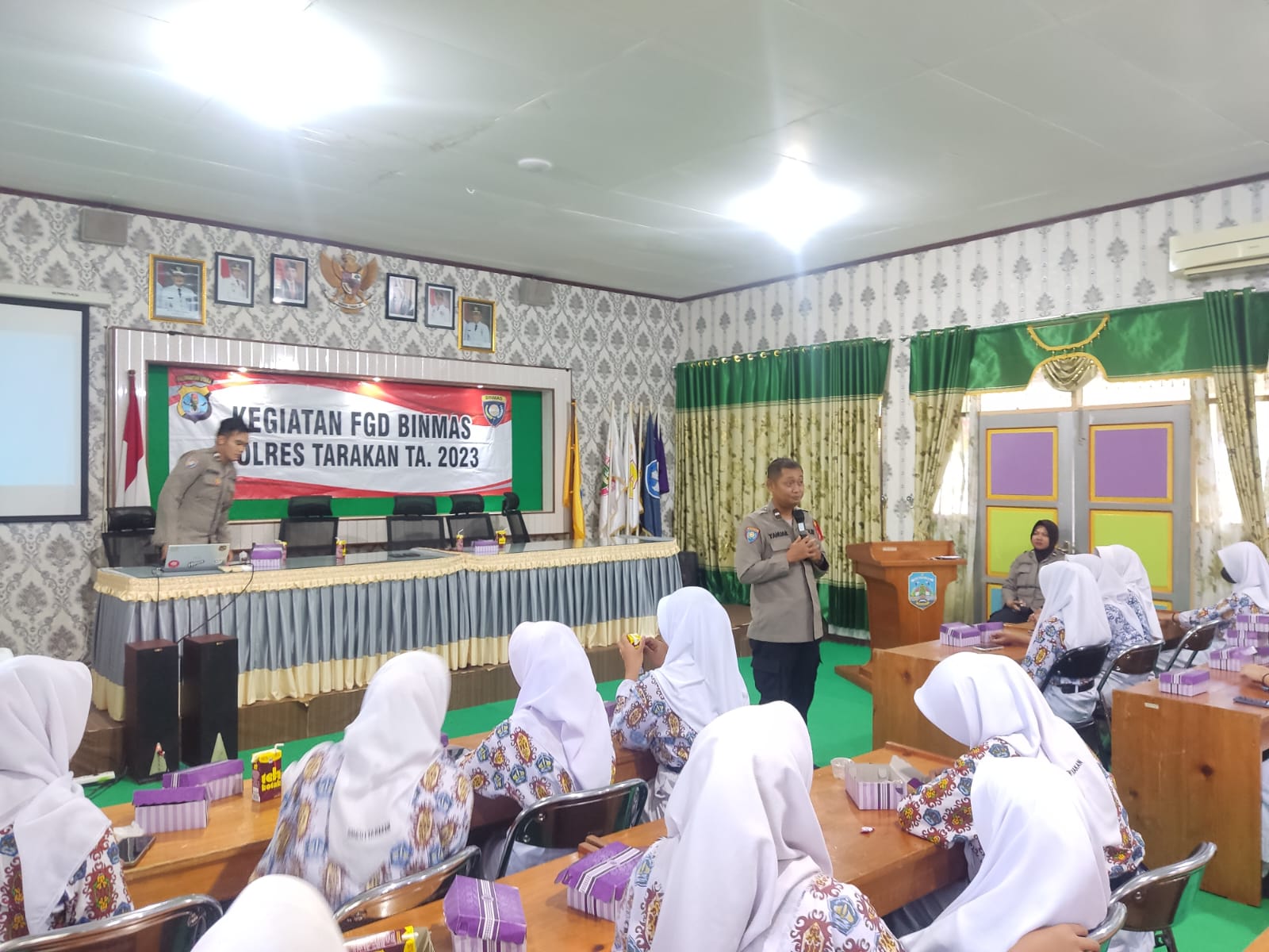 Pada kegiatan Forum Group Discussion ini kasat binmas polres tarakan AKP Budi Santoso mengisi materi terkait kenakalan remaja dan terkait perundungan atau bullying.