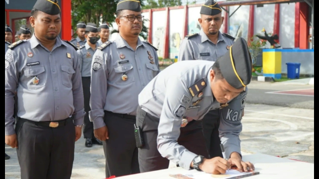 NUNUKAN – Kepala Lapas Kelas IIB Nunukan beserta Pejabat Struktural dan seluruh pegawai Lapas melaksanakan apel penandatanganan bersama pakta integritas sebagai salah satu syarat pencanangan Zona Integritas menuju Wilayah Bebas Korupsi (WBK), Kamis (18/01/2024).