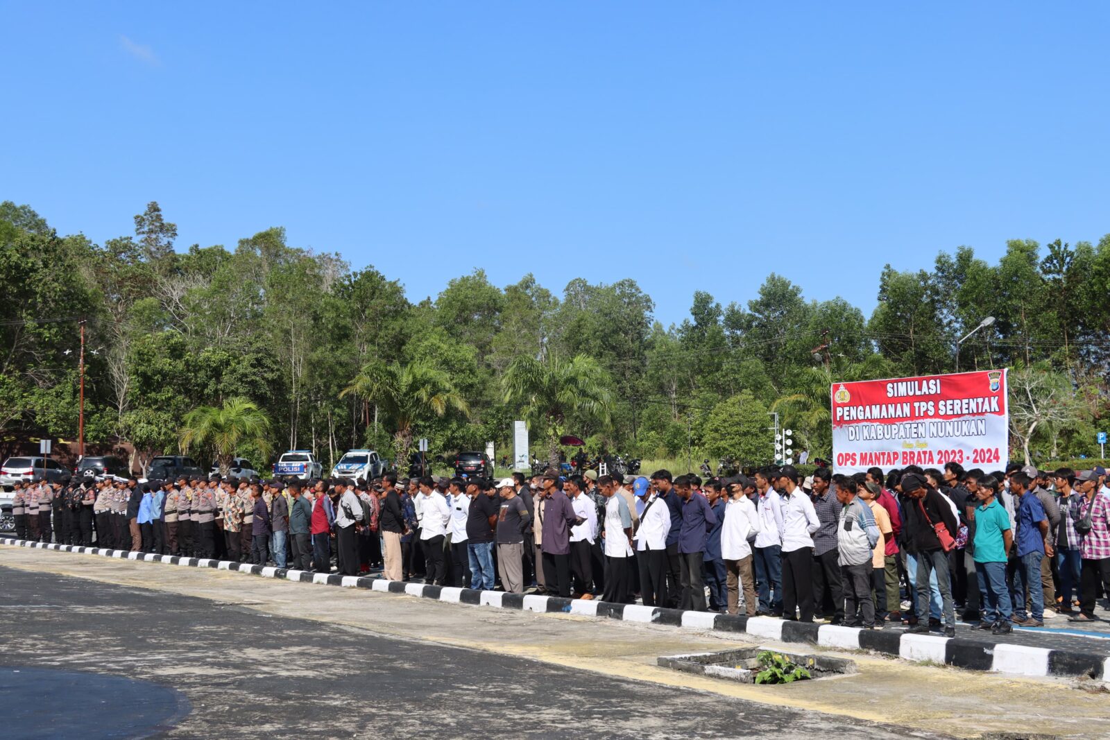NUNUKAN – Jelang Pemilihan Umum (Pemilu), Polres Nunukan menggelar simulasi pengamanan Tempat Pemungutan Suara (TPS) operasi mantap Brata 2023-2024, di lapangan tribrata Polres Nunukan, Selasa (23/1/2/2024).