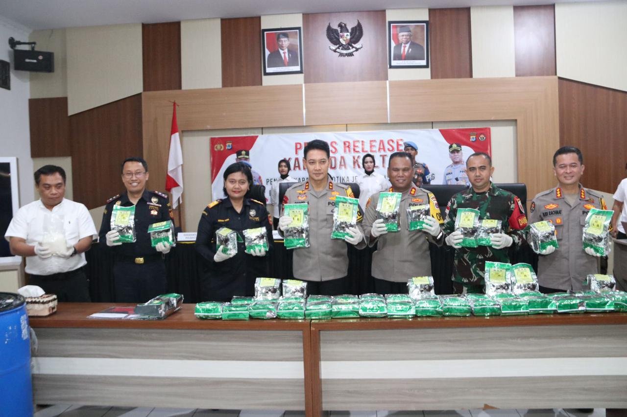 Press Release tersebut dipimpin secara langsung oleh Kapolda Kaltara Irjen Pol. Daniel Adityajaya, S.H., S.I.K., M.Si., dan didampingi oleh Dirresnarkoba Polda Kaltara Kombes Pol. Agus Yulianto S.I.K., S.Sos., Kabid Humas Polda Kaltara Kombes Pol. Budi Rachmat S.I.K., M.H., Kapolres Nunukan AKBP Taufik Nurmandia S.I.K., M.H., Danyon Pamtas 8/MBC Letkol Arh. Iwan Hermaya Purnawan, S.I.P. M.I. P, Kakanwil DJBC Kalimantan Bagian Timur Kusuma Santi Wahyuningsih dan Insan Pers.