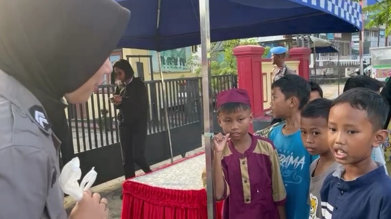 “Dan Tadi sebagian dari anggota kami dari polwan juga mengmbil cara untuk mengingatin adek-adek belajar untuk terus berdoa dan membaca surat atau ayat-ayat sesuai yang diajarkan di agama islam, sebagai bentuk berbagi kasih,” tambahnya.