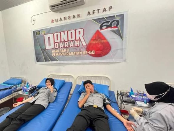 Kegiatan Donor Darah dilaksanakan secara serentak dalam rangkaian kegiatan memperingati Hari Bhakti Pemasyarakatan ke-60, merupakan salah satu bentuk mewujudkan sikap peduli yang dilakukan oleh jajaran Pemasyarakatan Kementerian Hukum dan HAM (Kemenkumham) untuk memberi manfaat kepada sesama.
