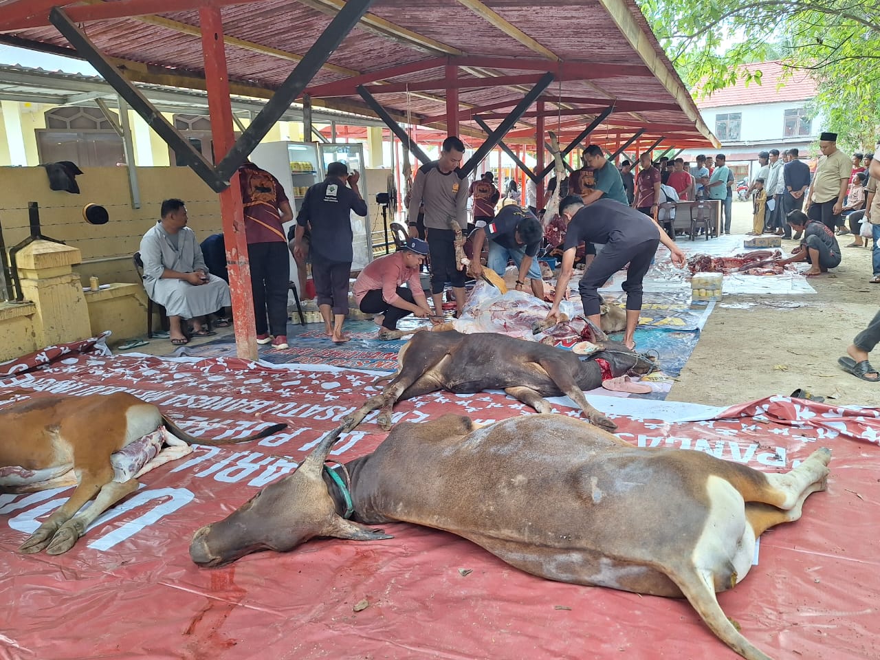 Selain disembelih di halaman Mushola Polres Nunukan sebanyak 10 ekor sapi, juga dilaksanakan penyembelihan atau disumbangkan ke Lapas Nunukan 1 ekor sapi, di Polsek Sebatik Timur 1 ekor, dan di Polsek Sebatik Barat 1 ekor, serta 1 ekor disumbangkan ke masjid Nurul Yasin.