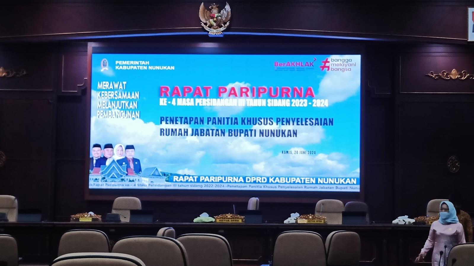 NUNUKAN – DPRD Kabupaten Nunukan menetapkan Panitia Khusus Penyelesaian Rumah Jabatan Bupati Nunukan melalui Rapat Paripurna, Kamis (20/6/24) di Kantor DPRD Nunukan.