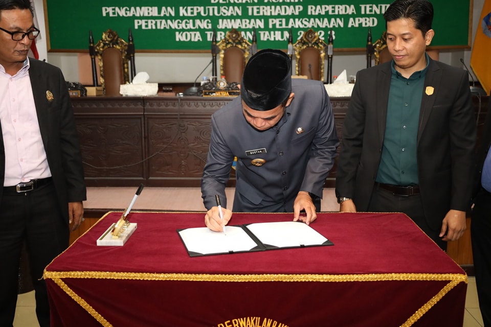 TARAKAN – Rancangan Peraturan Daerah (Raperda) tentang Pertanggungjawaban Pelaksanaan Anggaran Pendapatan dan Belanja Daerah (APBD) Kota Tarakan Tahun Anggaran 2023 resmi disetujui oleh Dewan Perwakilan Rakyat Daerah (DPRD) Kota Tarakan.