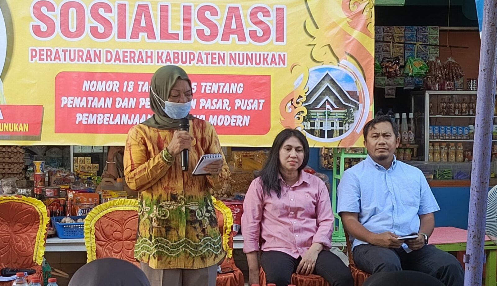 NUNUKAN- Ketua DPRD Nunukan Hj Leppa bersama Dinas Koperasi, UKM, Perindustrian dan Perdagangan Kabupaten Nunukan melaksanakan sosialisasi Perda (Sosper) No 18 tahun 2015 tentang penataan dan pembinaan pasar.