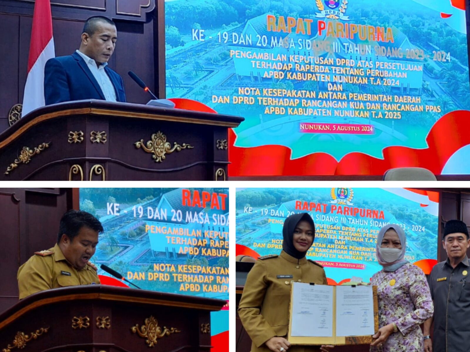 Pernyataan ini disampaikan pada Rapat Paripurna Ke-19 Masa Persidangan Ke III Tahun Sidang 2023-2024 DPRD Kabupaten Nunukan, dalam rangka persetujuan bersama terhadap rancangan peraturan daerah Kabupaten Nunukan tentang Perubahan Anggaran Pendapatan Dan Belanja Daerah Tahun Anggaran 2024 , yang dipimpin ketua DPRD Nunukan, Hj. Leppa dan dihadiri Bupati Nunukan, Asmin Laura Hafid, Senin (05/08/2024),