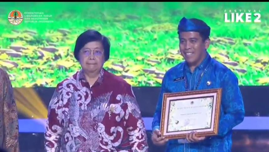 Piagam Apresiasi Pembinaan Proklim oleh Menteri Lingkungan Hidup dan Kehutanan, Prof. Dr. Ir. Siti Nurbaya, M.Sc. diserahkan langsung kepada Gubernur Kaltara, DR (HC) H. Zainal A. Paliwang, M.Hum melalui Kepala Dinas Lingkungan Hidup (DLH) Kaltara, Dr. Ir. Rahmat Wahyullah, ST, MT., dalam acara Festival LIKE 2 di Jakarta Convention Center (JCC) Hall B, Jumat (9/8).