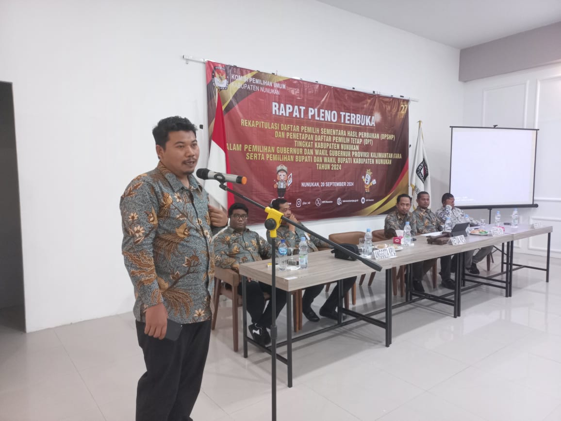 Rapat Pleno Terbuka Rekapitulasi Daftar Pemilih Sementara Hasil Perbaikan (DPSHP) dan Penetapan Daftar Pemilih Tetap (DPT) Tingkat Kabupaten Nunukan pada Pemilihan Gubernur Dan Wakil Gubernur Pemilihan Bupati Dan Wakil Bupati/Walikota Dan Wakil Walikota Tahun 2024.