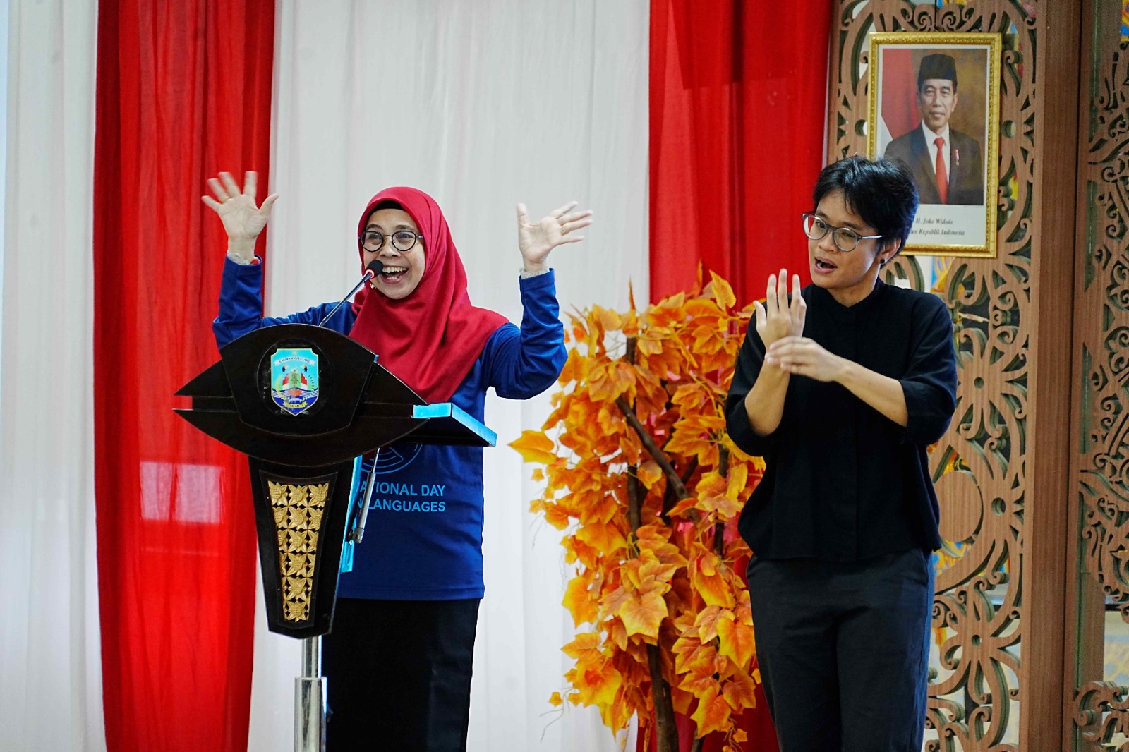 Dalam kegiatan yang bertajuk “Tunjukkan Isyaratmu! Dukung Hak Bahasa Isyarat”, ia menyampaikan bahwa pemerintah terus mengupayakan agar sahabat tuli (tunarungu,red) mendapatkan ruang gerak yang aman untuk berkreasi dan beraktivitas.