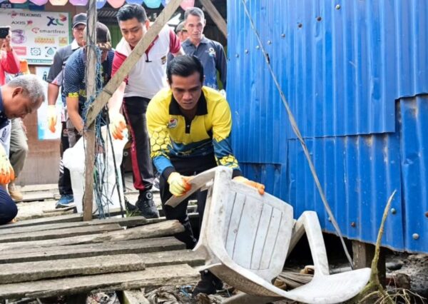 Turut pula hadir Bupati Nunukan, H. Irwan Sabri, yang turun lansung memungut sampah dan botol plastik yang menumpng di antara rumah warga.