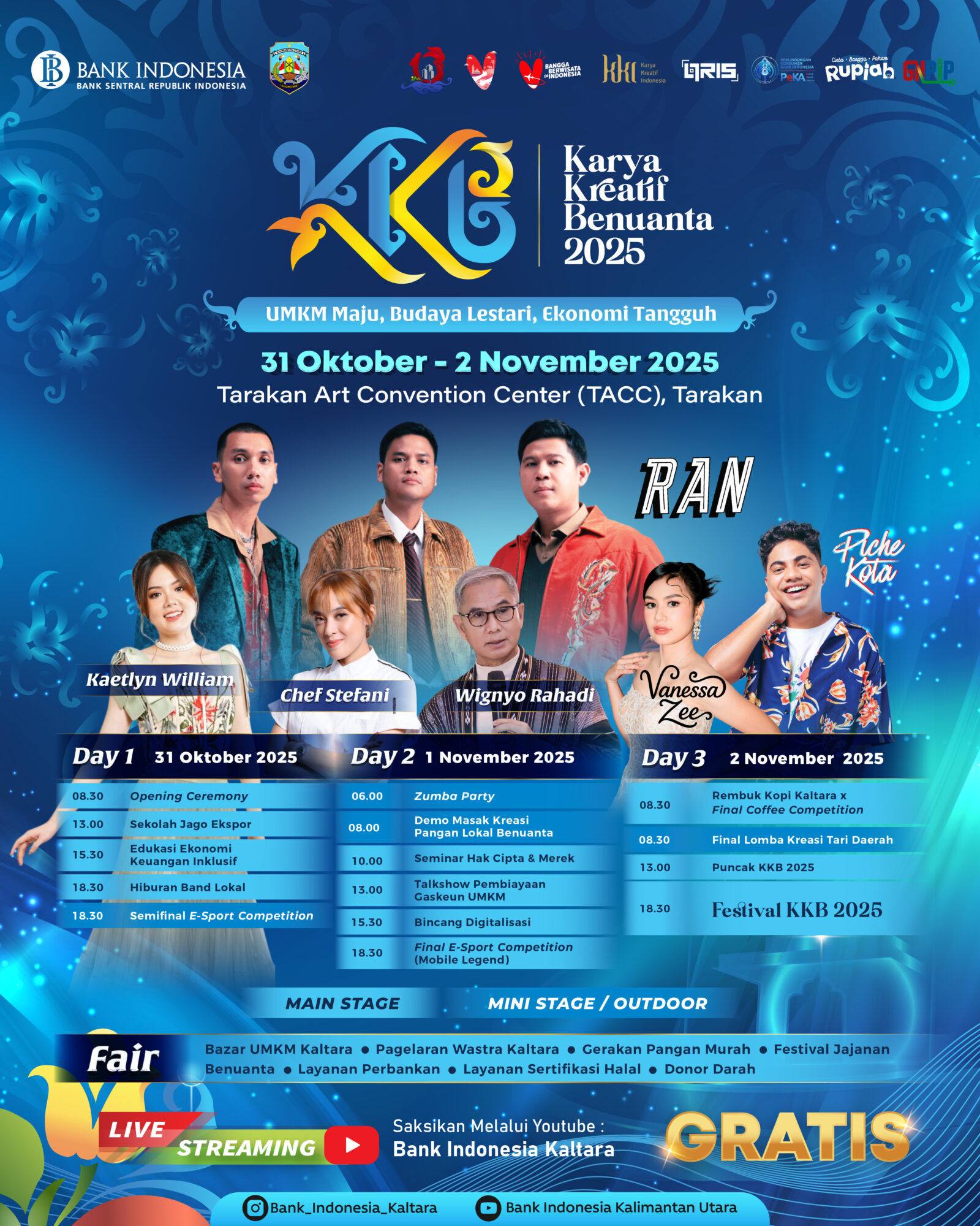 TARAKAN – Bertajuk “UMKM Maju, Budaya Lestari, Ekonomi Tangguh”. Kembali Bank Indonesia (BI) Provinsi Kalimantan Utara (Kaltara) menggelar Karya Kreatif Benuanta (KKB) 2025.