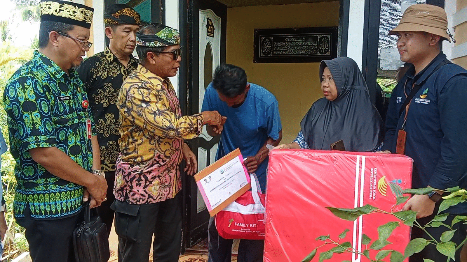Selain melihat kondisi rumah dan memberi semangat kepada para korban, Gubernur juga menyerahkan bantuan dukungan logistik berupa terpal, matras dan family kit.