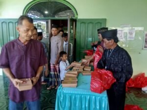 Ya Program yang sebelumnya dilakukan setiap hari Jumat berbagi nasi kotak yang diberikan gratis pada jamaah, sempat terhenti, kini dibangkitkan Kembali oleh para tokoh agama, RT, pemuda dan jamaah.