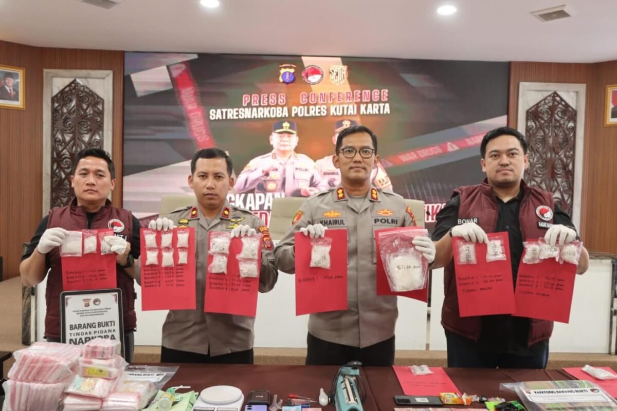 Press release tersebut dipimpin langsung oleh Kapolres Kutai Kartanegara AKBP Khairul Basyar, didampingi Wakapolres Kutai Kartanegara Kompol Izdiharuddin Faris Raharja Putra, Kasat Resnarkoba AKP Yohanes Bonar Adiguna, serta dihadiri Kasi Humas IPTU Maryono.