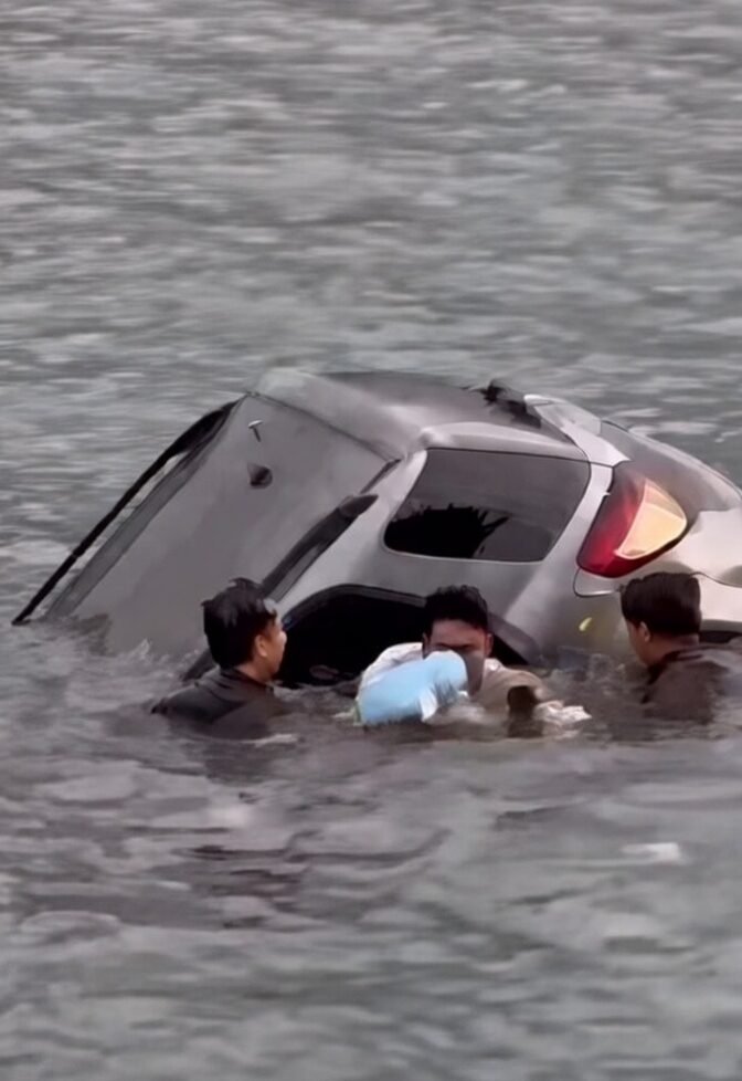 Peristiwa tersebut sontak mengundang perhatian warga sekitar. Berdasarkan video amatir yang beredar di media sosial, mobil terlihat sudah berada di dalam air dengan posisi sebagian bodi terendam. Sejumlah warga yang berada di lokasi langsung berupaya memberikan pertolongan.