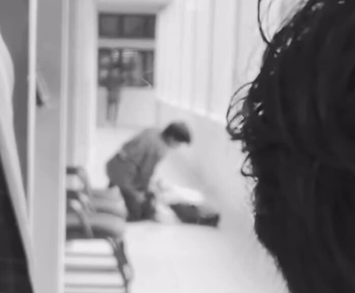 Foto tangkapan layar: Pelaku (kiri) tampak berlutut di dekat korban yang tergeletak usai insiden pembacokan di lingkungan kampus UIN Sultan Syarif Kasim Riau, Pekanbaru, Kamis (26/2/2026). Korban mengalami luka serius dan telah dilarikan ke rumah sakit untuk mendapat perawatan, sementara pelaku diamankan aparat keamanan. (ist)