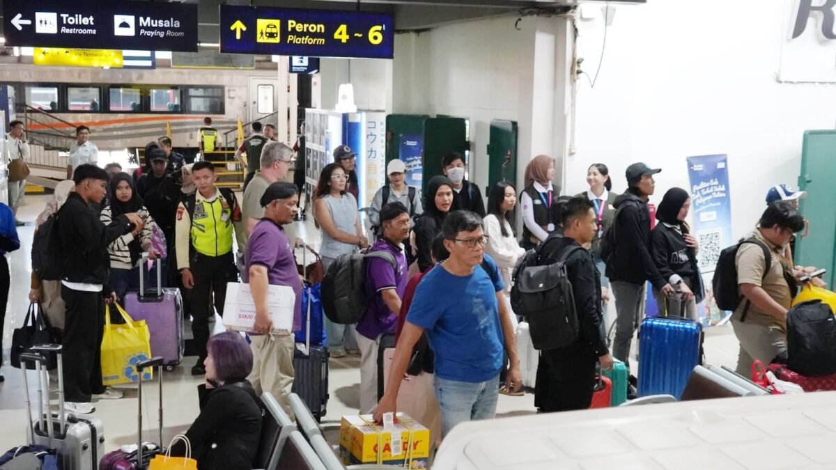 Yogyakarta – PT Kereta Api Indonesia (KAI) Daerah Operasi 6 Yogyakarta mencatat tingginya mobilitas masyarakat pada H+2 Lebaran 2026. Hingga Senin (23/3) pukul 09.00 WIB, total penumpang kereta api jarak jauh yang datang dan berangkat di wilayah Daop 6 Yogyakarta mencapai 63.201 orang.