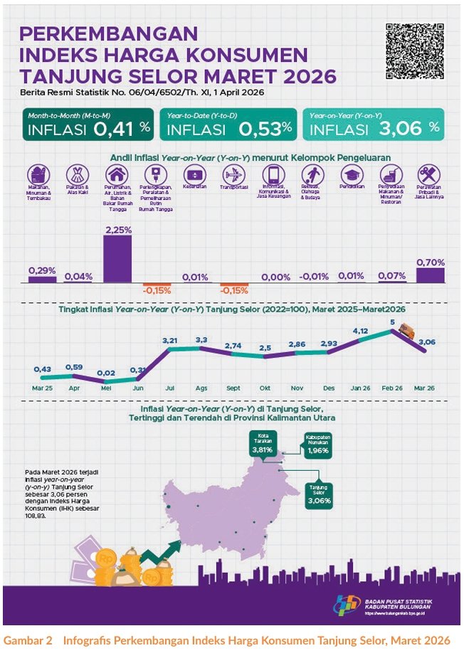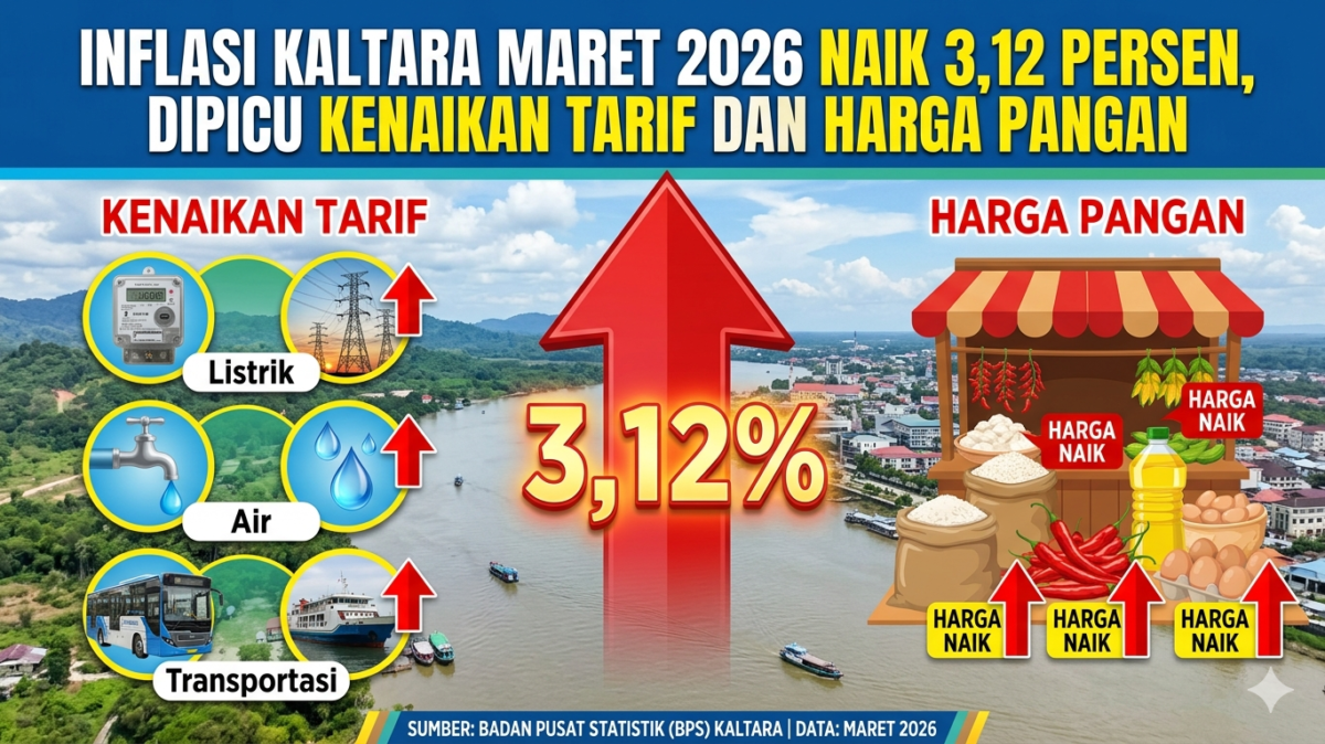 TANJUNG SELOR – Laju inflasi di Provinsi Kalimantan Utara pada Maret 2026 tercatat mengalami kenaikan secara tahunan. Berdasarkan data resmi, inflasi year on year (y-on-y) mencapai 3,12 persen dengan Indeks Harga Konsumen (IHK) sebesar 109,68.